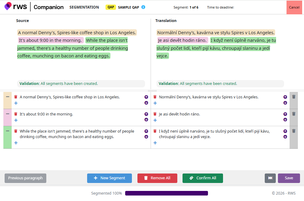 To confirm all segments at once, click the Confirm All button at the bottom of the page.